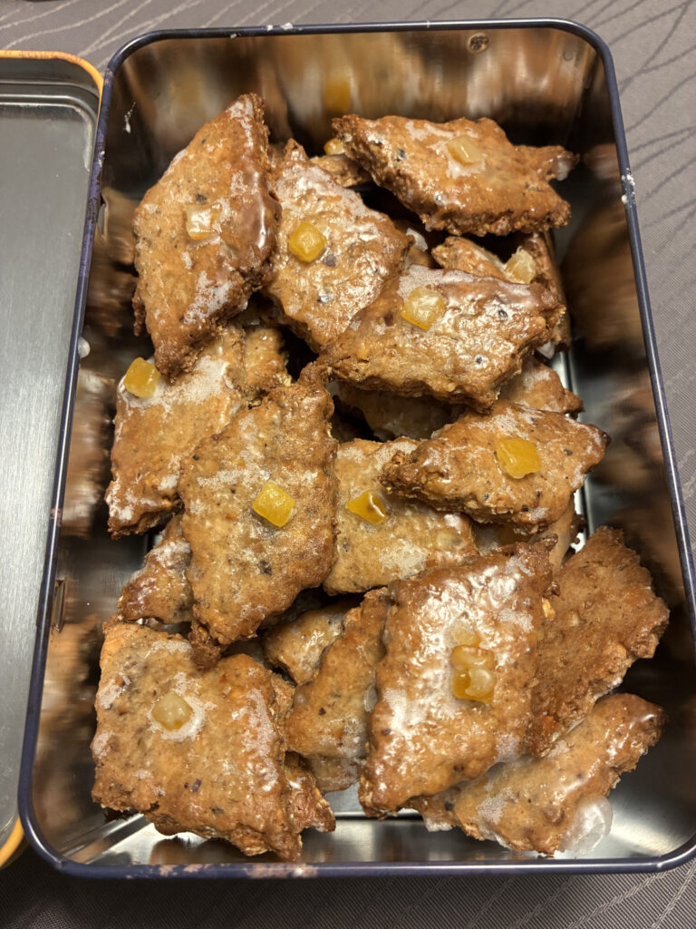 • Die noch heißen Stücke nach dem Backen mit der Glasur bestreichen.
